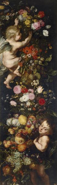 Paint by Number Festoon of Flowers and Fruits and Cherubs - Jan Brueghel the Elder
