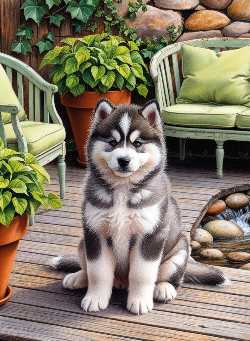 Paint by Number Adorable Fluffy Alaskan Malamute Pup