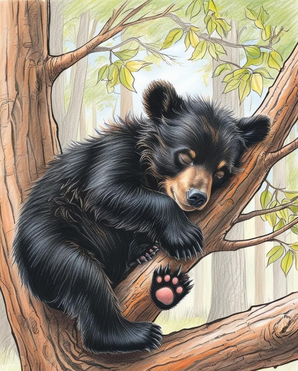 Paint By Number Black Bear Cub Taking a Nap Among the Branches