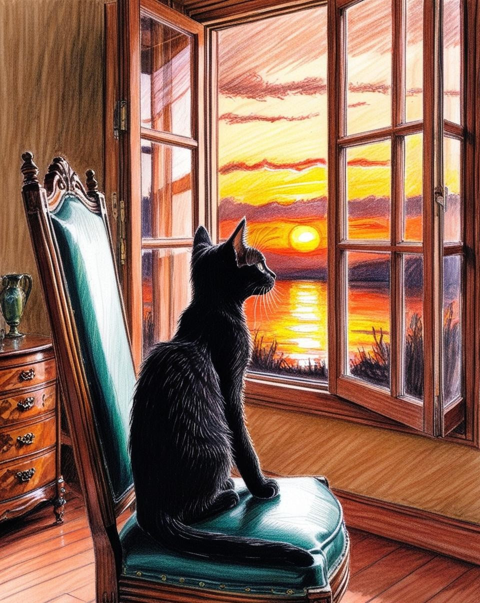 Paint by Number Black Cat at Sunset