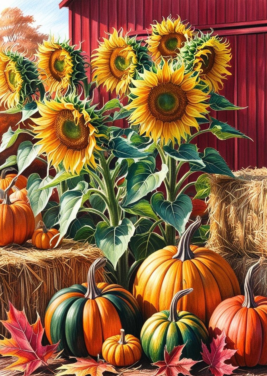 Paint By Number Bright Pumpkins and Yellow Sunflowers