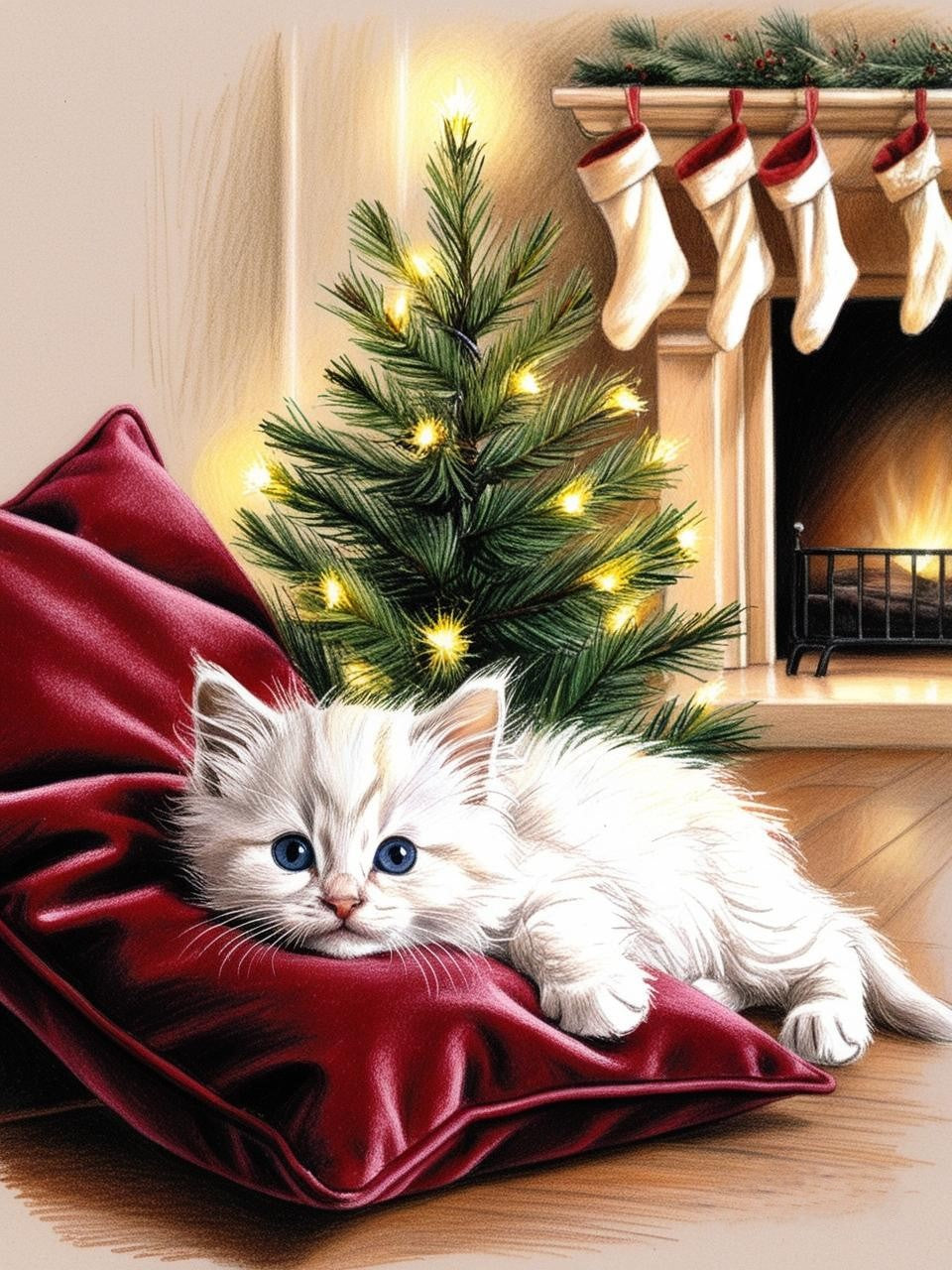 Paint by Number Christmas Kitten Magic