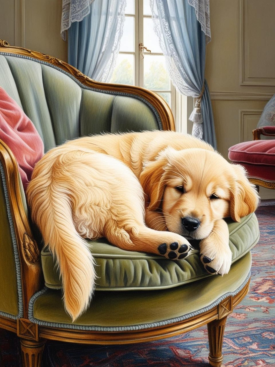 With our stunning paint by number kits, you'll be able to create beautiful artwork for your enjoyment, to enhance your home, and create true masterpieces. Each paint by number kit has brushes, numbered paints, and an easy-to-follow reference guide. Get started today with this beautiful Paint by Number Cozy Nap: Golden Retriever.