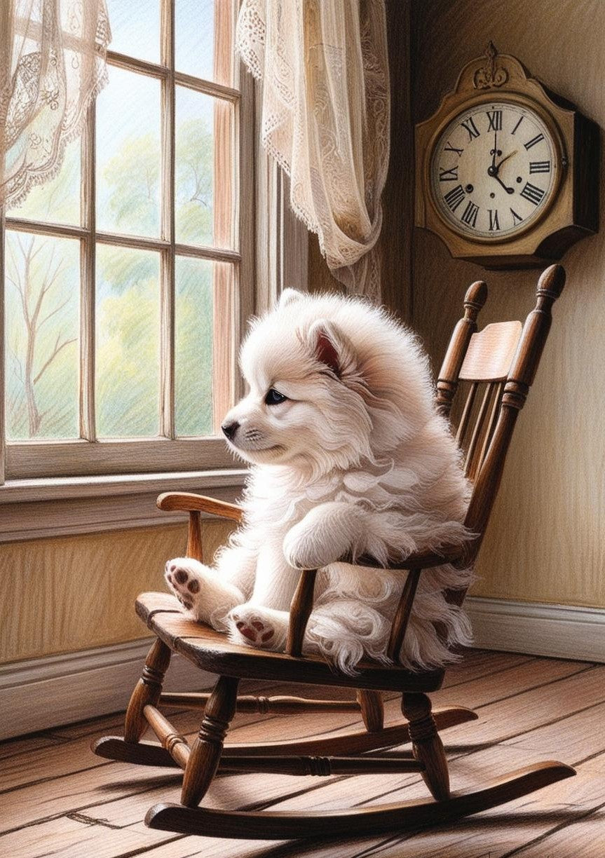 Paint by Number Dreamy Samoyed: Gazing Out the Window