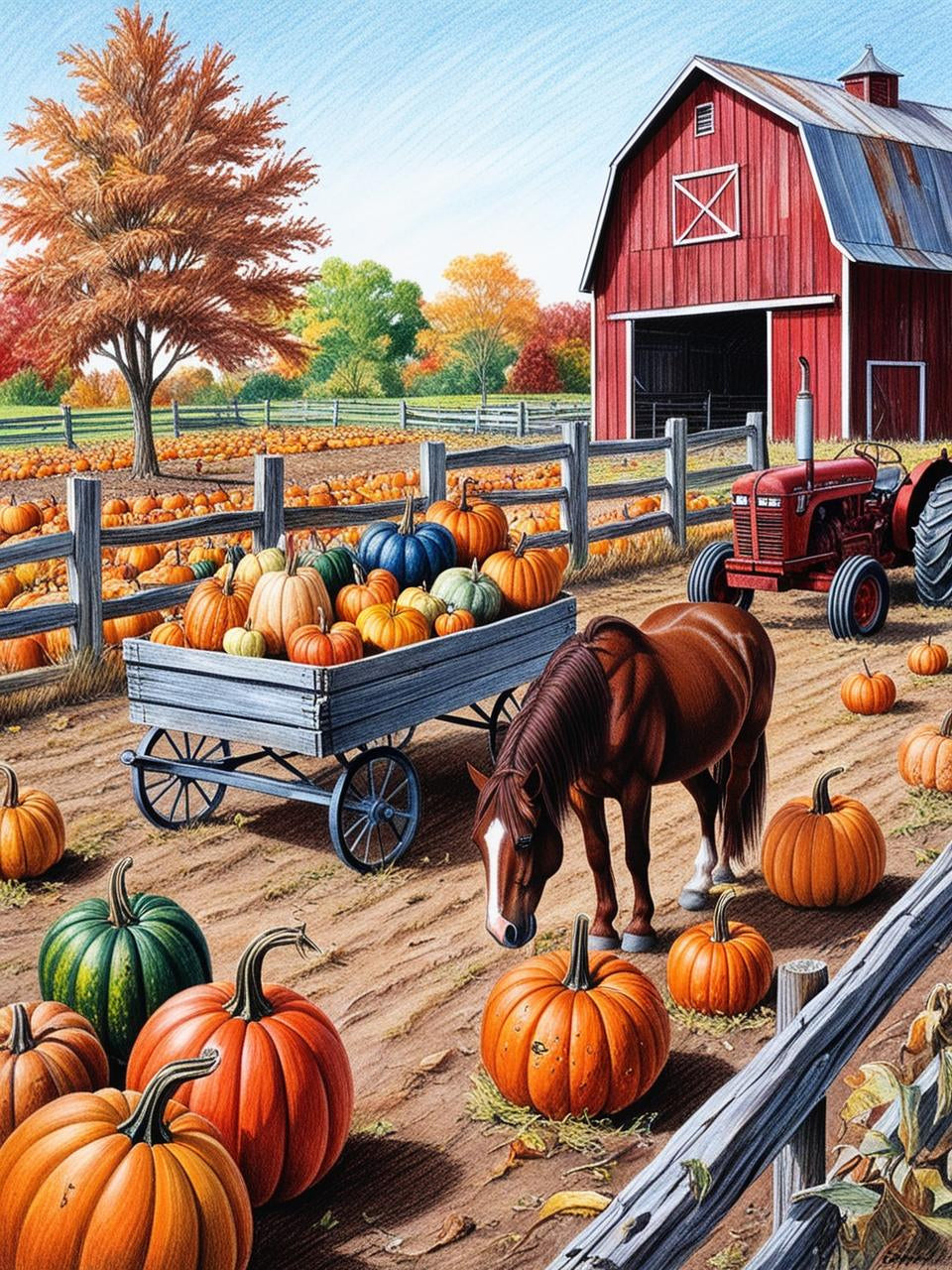 Paint By Number Fall Harvest Pumpkins at the Farm