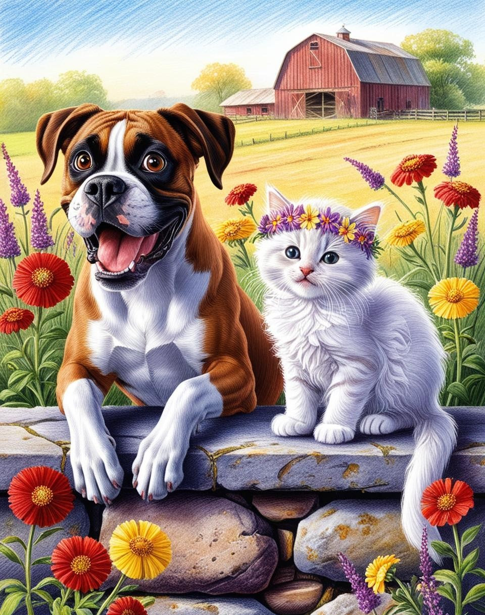 With our stunning paint by number kits, you'll be able to create beautiful artwork for your enjoyment, to enhance your home, and create true masterpieces. Each paint by number kit has brushes, numbered paints, and an easy-to-follow reference guide. Get started today with this beautiful Paint by Number Furry Besties.