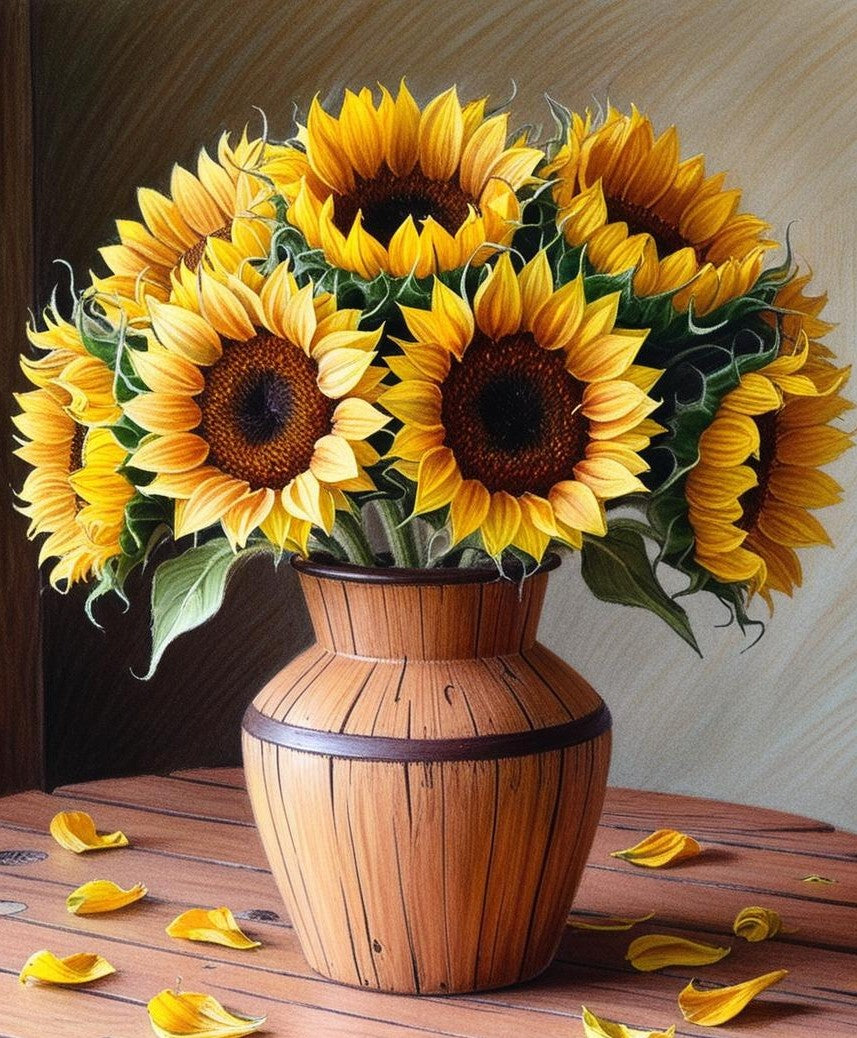 Paint by Number Vibrant Sunflowers Adorn a Rustic Tabletop