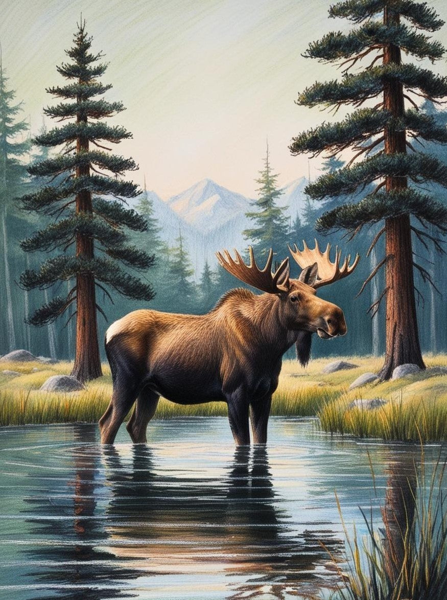 Paint By Number Wilderness Moose Among Towering Pines